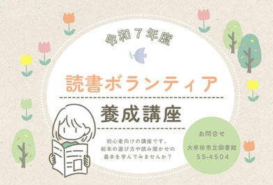 定員:抽選20名(3回とも参加できる方を優先します)対象:読書ボランティアに興味のある方・活動されている方