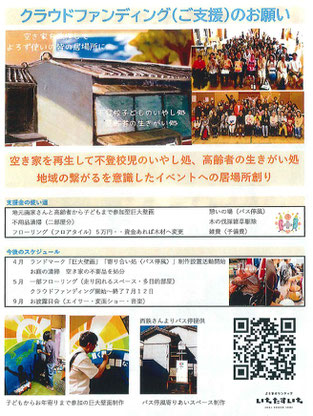 詳しくはチラシをご覧いただき、共感して頂けたら、ぜひご支援をお願いします。