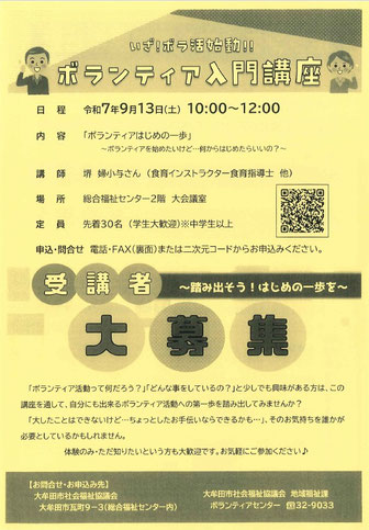 ◆令和7年度アクティブシニアデビュー塾 ボランティアデビュー編