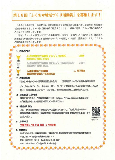ふくおか地域づくり活動賞 募集期間が延長されました